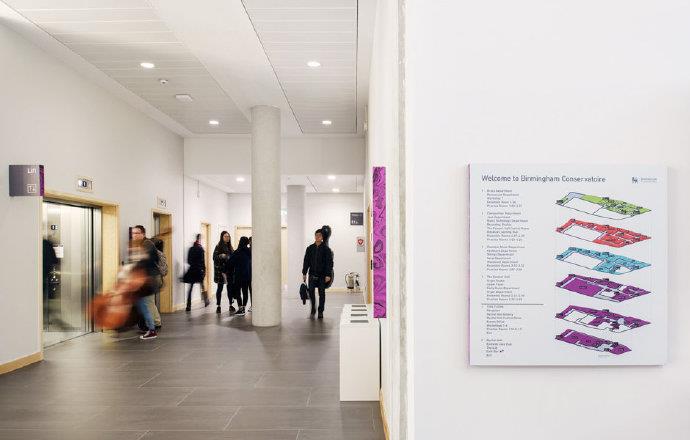英國皇家伯明翰音樂學(xué)院(Royal Birmingham Conservatoire)標(biāo)識導(dǎo)視系統(tǒng)設(shè)計,Thomas.Matthews作品。