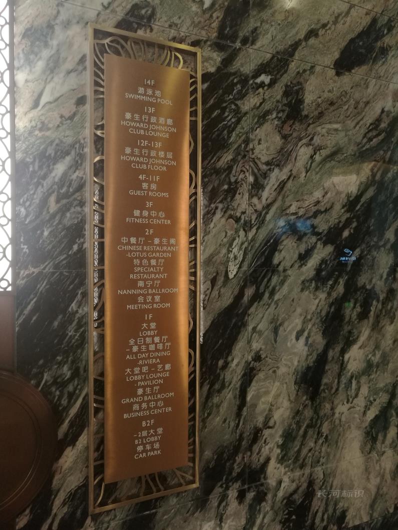 高檔酒店室內,室外的視覺識別,方向引導,信息傳遞等功能性標識系統(tǒng)整體解決方案,提出更深,更精的要求。使酒店從裝飾,功能性引導,人性化服務等方方面面得到更完美的提升及完善的運行。